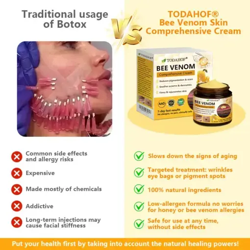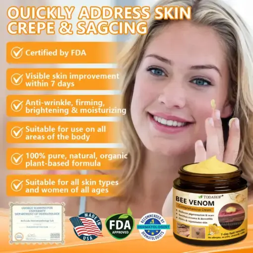 âIâm on my feet all day for work, and itâs caused me to develop spider veins. I hated how they looked and felt like I had no choice but to cover them up with long pants. I decided to try this cream after hearing about the benefits of bee venom for skin issues. It actually worked! My legs felt more relaxed on the first day, and by day six, the veins started to fade. After about a week more, they were totally gone! My legs are smooth again, and even with long hours of standing, thereâs no more swelling or discomfort!â â Alana Shillinglaw, Washington, USA