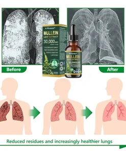 ใProfessionalใ Organic Lung Cleansing Mullein Leaf Extract Drops – Cleans trachea and lung residues – Repairs alveoli – Regenerates tracheal tissue – Combats allergies/asthma – Regains breathing smoothness – Assists in the treatment of chronic obstructive pulmonary disease (COPD)