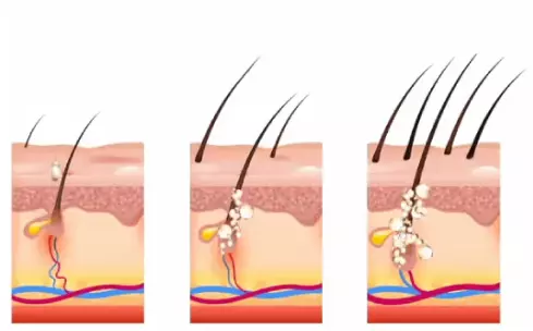 Follicle damage is commonly caused by bacterial or fungal infections, which trigger the body’s natural defenses and attack the scalp, leading to hair loss. These infections lead to swelling, knots, and the accumulation of pus and dead matter around the follicles.