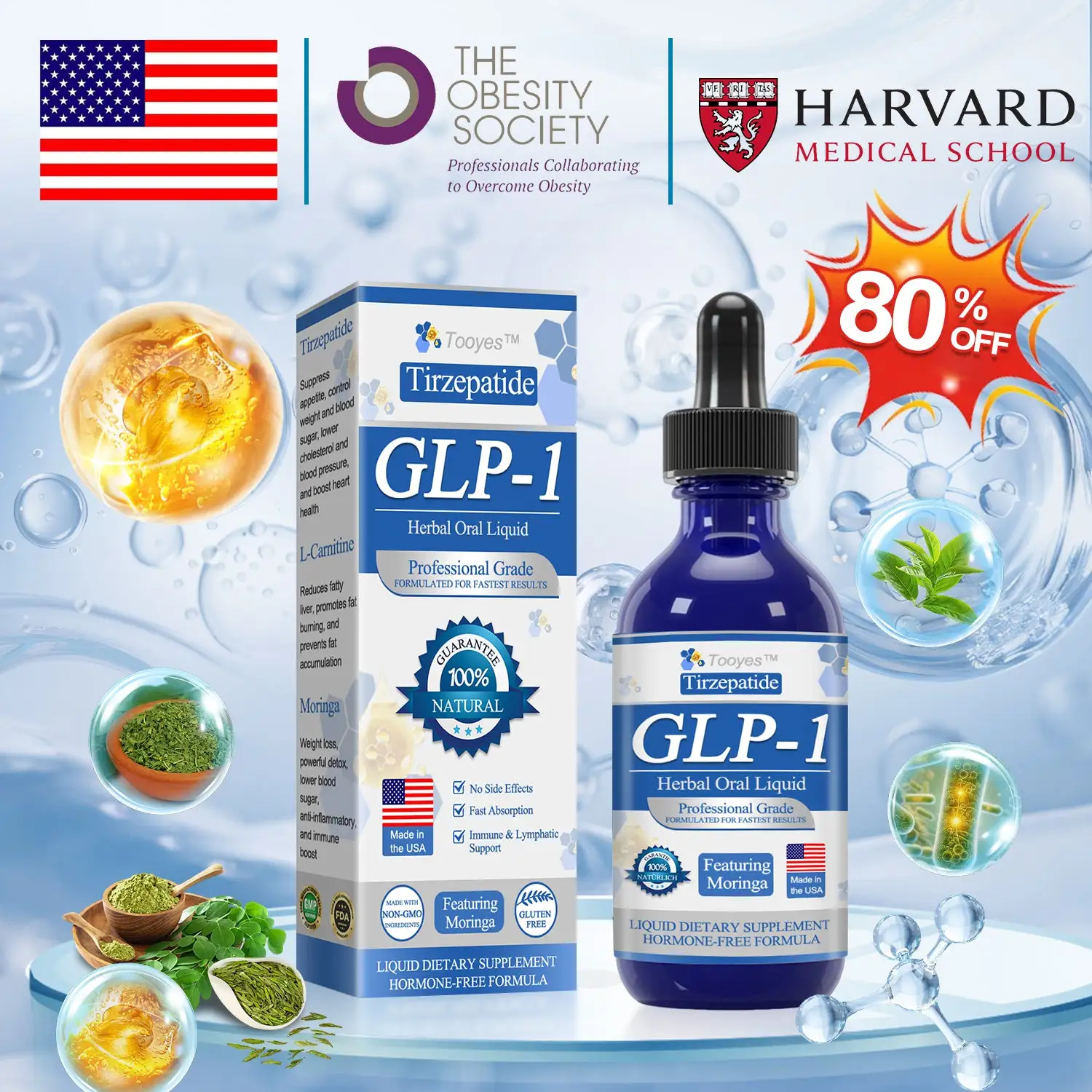 The key ingredient inย Tooyesโข Tirzepatide GLP-1 Herbal Oral Liquid, theย oral Tirzepatide, was meticulously developed by a team ofย endocrinology and metabolism expertsย fromย Harvard Medical School. With overย 15 years of research experienceย inย weight lossย andย metabolic management, the team is dedicated to exploring the most advanced treatment methods, resulting in thisย revolutionary product.