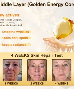 Benefits: ๐ฉ๐๐ ๐๐๐๐๐ stimulates microcirculation and collagen production, acting as a natural booster to reduce wrinkles by up to 95% in just 6 weeks. Meanwhile, Retinol enhances collagen synthesis and smooths texture, visibly reducing fine lines by 87% in 5 weeks. The Peptide Complex (Argireline, Matrixyl 3000, Copper Peptides) works as the “Firmness Architect,” reducing wrinkle depth by 92% and improving skin elasticity. Finally, Vitamin C and CoQ10 protect against environmental damage, restoring your skinโs glow and improving brightness by 90% in just 4 weeks.