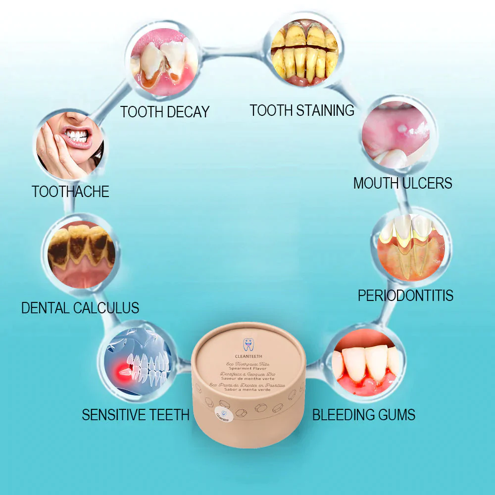 🔥CLEANTEETH™🔥Chewable Toothpaste Tablets, Calculus Removal, Teeth Whitening, Healing Mouth Ulcers, Eliminating Bad Breath, Preventing and Healing Caries has the following product: