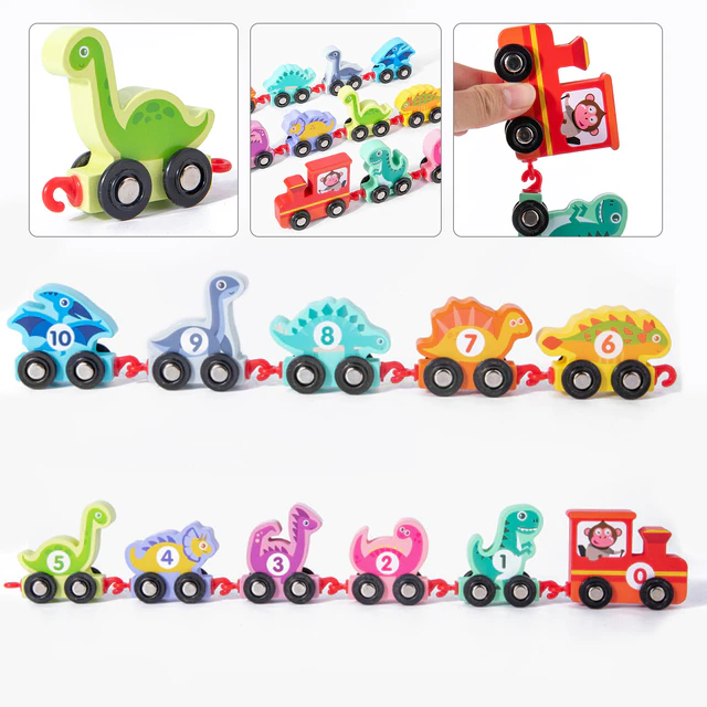11pcs Wooden Dinosaur Trackless Trains Bullet Points: