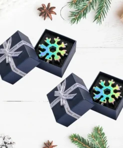 The solid and compact 0.3″ thick snowflake design includes non-removable parts that function as a flat-head screwdriver, box cutter, rope cutter, bottle opener, and a Phillips screwdriver