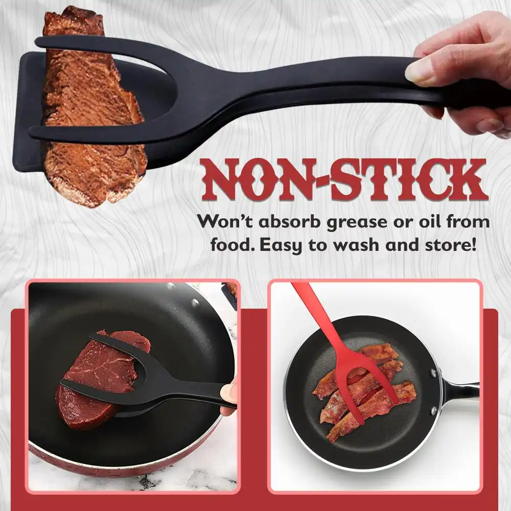 The egg spatula tongs that we specially designed for you are the ideal product for cooking and serving. Makes cooking and serving your favorite foods easier. The 2 in 1 kitchen helper that flips like a spatula and grips like tongs, to grab scoop and serve foods fast and easy without the mess!