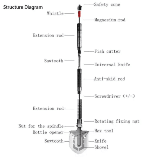 Here’s a list of the uses the survival shovel comes with that’ll help you survive in the wilderness, or just help with general outdoors usage while camping, hiking, or military usage: