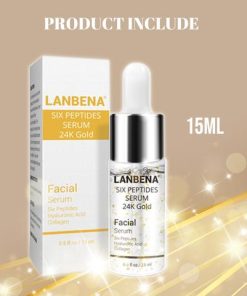 24K Gold Anti-Wrinkle Serum removes wrinkles, fine lines, etc. Formulated to fight all kinds of signs of aging that visibly reduces them. Enriched with Six Anti-aging Peptides that signal the body to produce natural collagen, it also helps prevent premature skin aging.