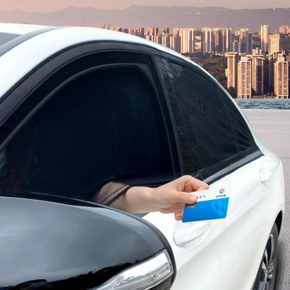 2pcs Car Front Rear Side Window Sunshade UV Protect Shield Mesh Prevent Mosquito Sunshine Privacy Protection Foldable Curtain