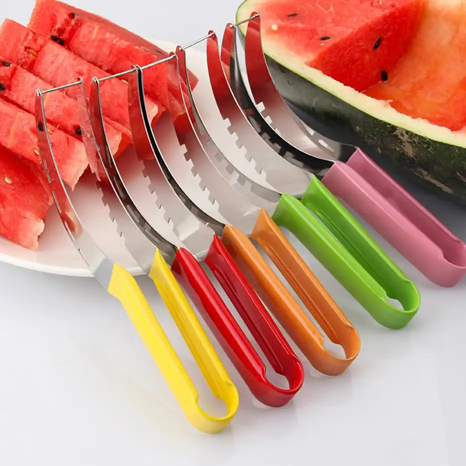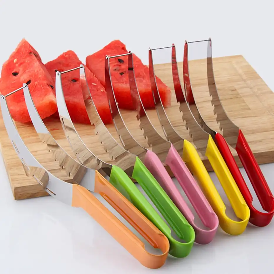 Our 3-in-1 Watermelon Slicer is a combined tool of carver, slicer and server to help you cut watermelon to perfect, ready-to-serve size.