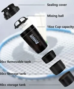 3 Layers Design :The 3 layers design of this shaker bottle allows for efficient mixing of powders and liquids, making it perfect for bodybuilding and exercise.