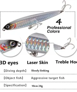4pcs/set Fishing Bait Pencil Sinking 10cm 24g Bass Fishing Tackle Saltwater Lures Fish Bait Trolling LureFishing Accessories