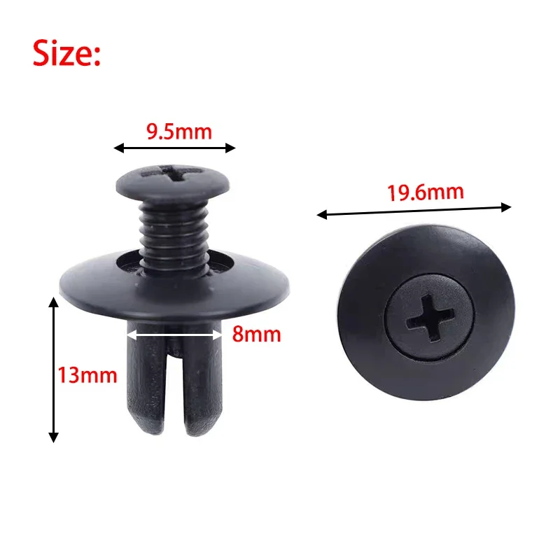 50Pcs 8mm Plastic Rivets Fasteners Screw Car Bumper Fender Black Rivet Fastener Clips for Audi Toyota Focus Kia Nissan Yamaha