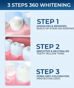The 5D Teeth Whitening Strips adopt innovative 360-degree teeth whitening technology that effectively removes years of buildup stain on your teeth’s surface.