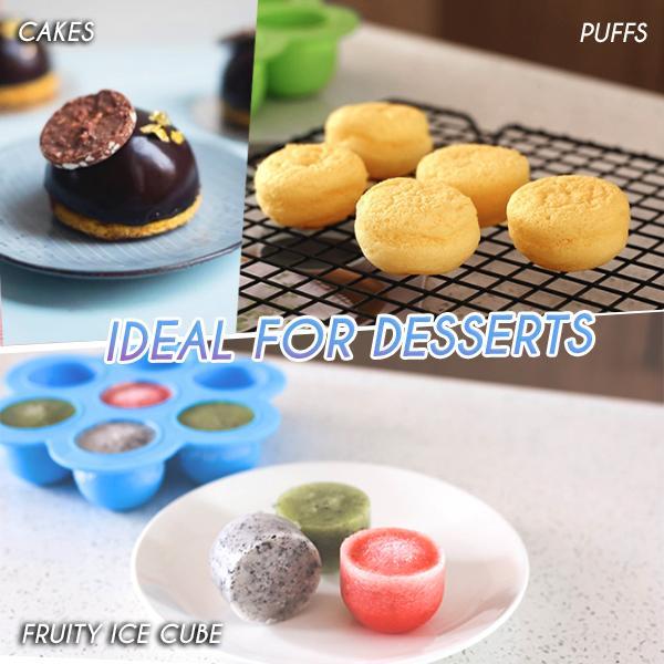 Add a baking and dessert tool to your collection, bring home a 7-well universal container. 7-well multi-purpose container as a soft and flexible mold that is widely used for baking and desserts. Heat-resistant materials, making it suitable for both hot and cold desserts, and the lid protects the contents.