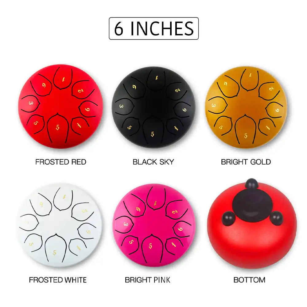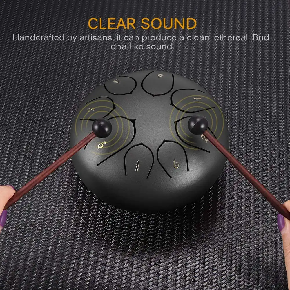 - Complete pack: The package comes with 1 x tongue drum, 4 x finger covers, 1 x carrier bag, 2 x drumsticks, 1 x manual