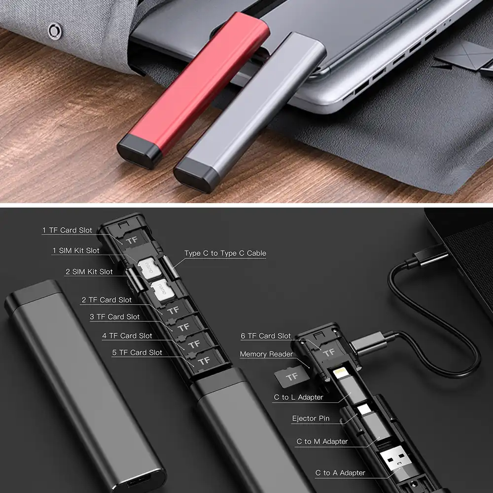 The card reader can be directly connected to the computer, comes with the data cable connection function, directly connects to the computer. 6 ways to match data cable, data cable plus adapters, which interface can be charged. Comes with card eject pin, replace the card to make it more convenient. Multiple functions in one, put and take with no more worries.