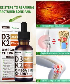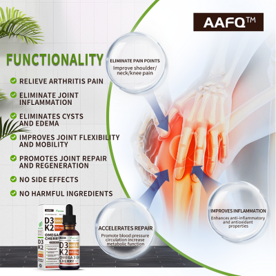 This tincture effectively addresses joint ailments through a blend of natural ingredients. Deer antler promotes blood circulation and nourishes joint tissues, repairing and enhancing their elasticity. Cherry extract, rich in antioxidants, combats arthritis-related inflammation while alleviating pain and swelling. Omega-3 fatty acids possess anti-inflammatory effects that reduce joint inflammation and enhance mobility. Vitamins D3 and K2 strengthen bones and promote repair, while curcumin and resveratrol provide anti-inflammatory and antioxidant benefits, supporting normal function. Dandelion root aids in detoxifying the joints, contributing to overall joint health.
