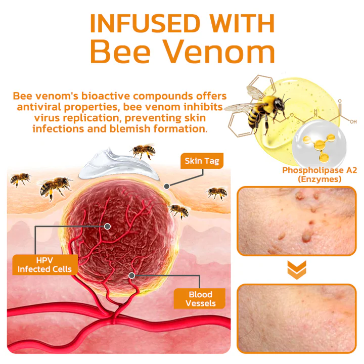AAFQ™ Beigeft Mole and Wart Treatment Cream offers a solution by leveraging the powerful attributes of bee venom to specifically address diverse skin irregularities like skin tags, moles, warts, and blemishes. Enriched with active components derived from bee venom, this advanced formulation works to dissolve and delicately eliminate undesirable growths.