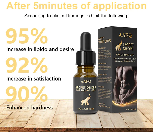 Fortunately, AAFQ™ Secret Drops for Strong Men targets the unique aspects of male strength, igniting the inner beast while fulfilling the desires of partners. Elevate testosterone levels within the body to new heights, leading her on a journey of joy and profound emotional connection, witnessing the remarkable transformation of the body. As a man who values the happiness of his partner, you now have the power to surprise her with the Secret Drops for Strong Men —Secret Drops for Strong Men, unlocking the inner beast.