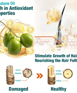 Squalane oil stands as a potent component within our refined formulation at AAFQ™ ZenithGrowth Moroccan Hair Oil. Sourced from olives, this natural compound brings forth remarkable antioxidant properties, offering a protective shield to both hair and scalp. By fortifying the hair, squalane oil aids in reducing susceptibility to breakage, fostering strength and resilience. Its inherent ability to safeguard against damage makes it an invaluable asset in our formula, contributing to the growth of hair by nourishing the hair follicles.