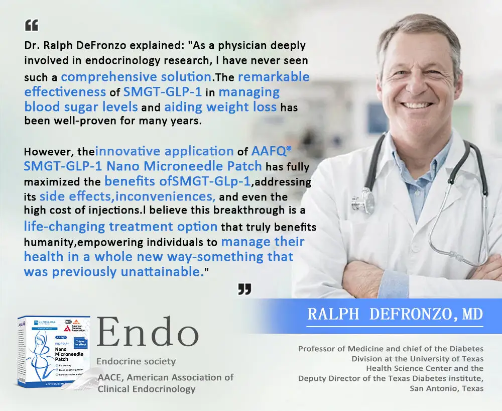 The 𝐀𝐀Ғ𝐐® SΜGT-G L P 1 𝐍𝐚𝐧𝐨 Μicroneedle Patch has been meticulously developed by The Obesity Society. Designed by a team of leading experts in obesity management, this cutting-edge product was created following years of in-depth research and a comprehensive understanding of the mechanisms involved in weight loss and obesity control. Its unique formulation is designed to effectively promote weight loss, maintain stable blood sugar levels, and enhance metabolic balance, while incorporating Matrixyl™ 3000 to deliver significant lifting and firming effects, helping users improve body shape and skin condition more comprehensively, thus supporting them in achieving their health goals.