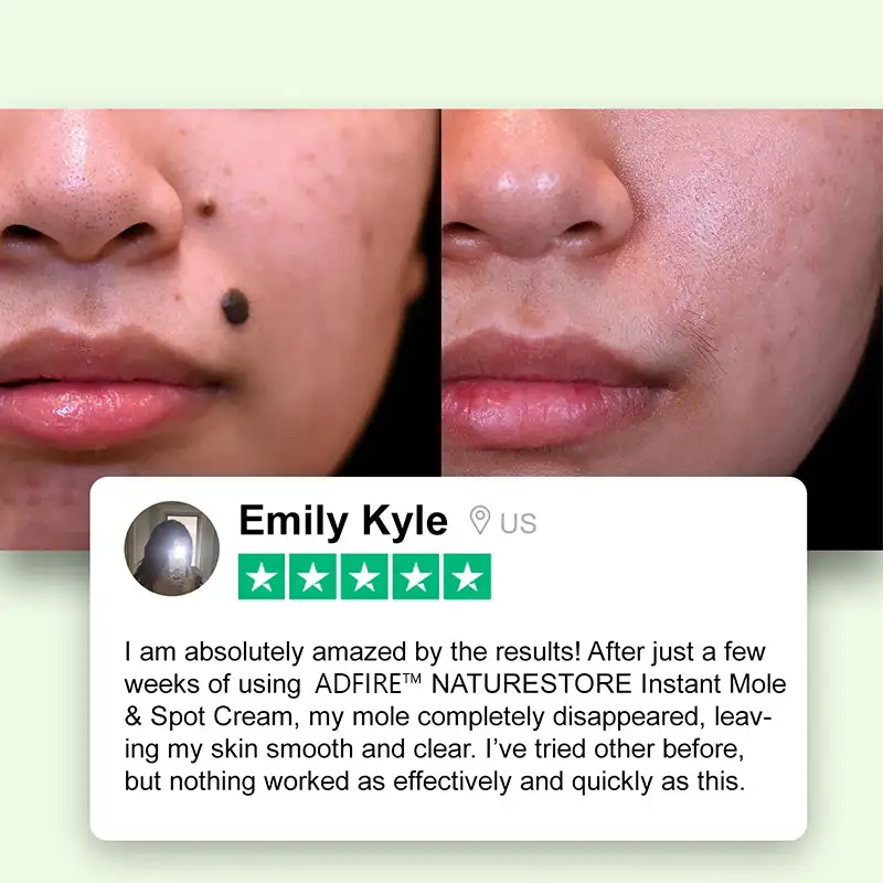 Después de solo una semana, la transformación fue increíble. El lunar y las imperfecciones habían desaparecido casi por completo, dejando mi piel con un aspecto limpio, radiante e impecable. ¡Me siento mucho más segura ahora! La Crema Instantánea para Lunares y Manchas ADFIRE ™ NATURESTORE ha superado mis expectativas y ahora es un producto imprescindible en mi rutina de cuidado de la piel.