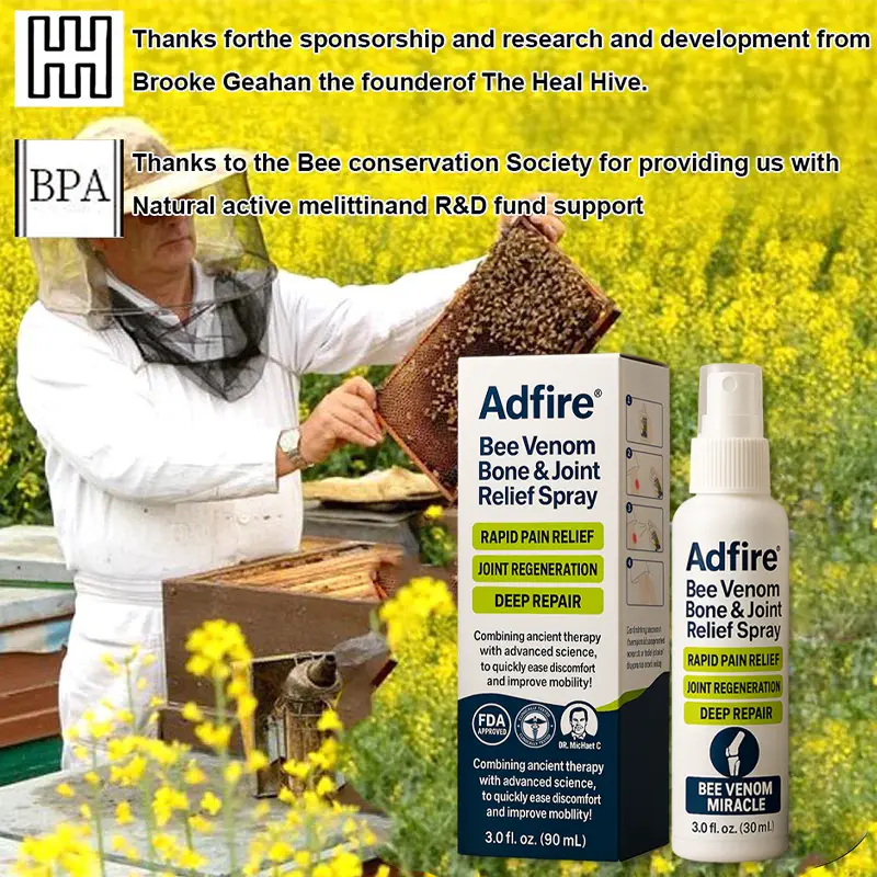 ADFIRE® Bee Venom Pain-Relief Bone Healing Spray contains six proven. powerful ingredients that have been used to effectively treat arthritis and bone-related conditions in millions of people around the world.