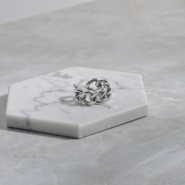 Adorn your jewelry box with this statement sterling silver chain ring that is sure to impress all your colleagues and get them to seek your advice on their next jewelry purchase.