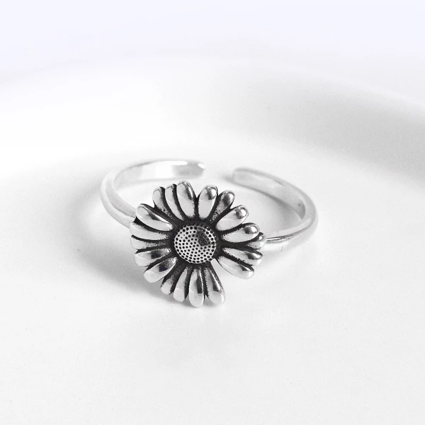 Antique Style Adjustable Silver Sunflower Ring has the following product features: