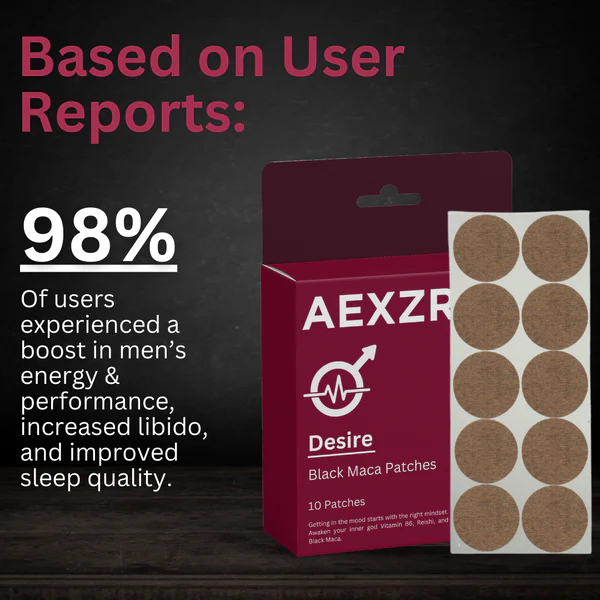 AEXZR™ Desire Black Maca Patches offer a convenient and effective way to harness the benefits of Black Maca. These patches utilize advanced transdermal technology to deliver the potent extract directly into the bloodstream, ensuring maximum absorption and efficacy. By consistently providing your body with the nutrients from Black Maca, AEXZR™ Desire Black Maca Patches can help enhance your libido, boost energy levels, and improve sexual performance, all while being discreet and easy to use. Say goodbye to the hassles of traditional supplements and embrace a natural solution to revitalize your intimate life.