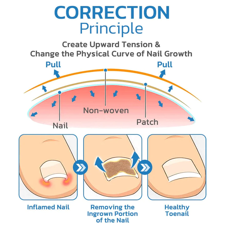 - 2. Please press the toenail correction patch on center of toenail.