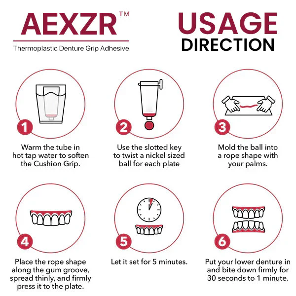 - Package: AEXZR™ Thermoplastic Denture Grip Adhesive