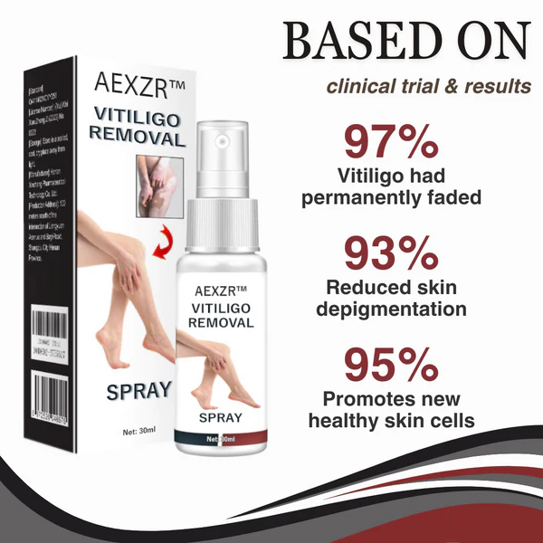 AEXZR™ Vitiligo Removal Spray plays a pivotal role in re-establishing the activity of melanocytes, the cells responsible for producing skin pigments. Its dynamic formula not only addresses the visible symptoms of vitiligo but also works at a cellular level to promote the natural balance of skin pigmentation. Embrace the power of this spray to revitalize and harmonize your skin, fostering a renewed sense of confidence and well-being.