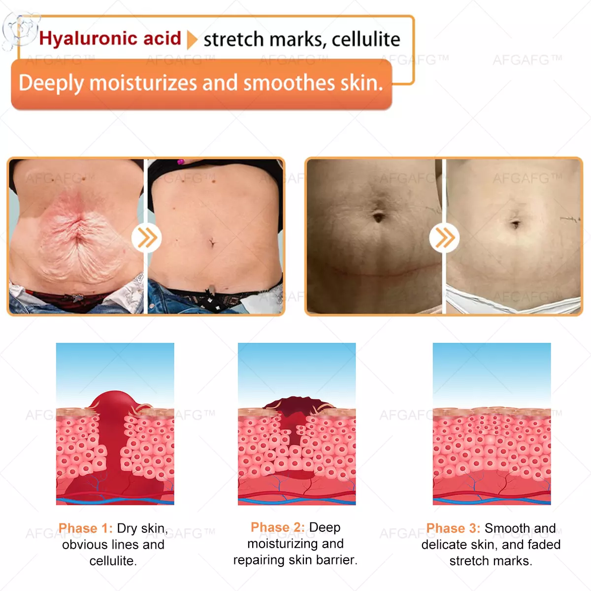 - Hyaluronic Acid: Hydrates the skin, helping reduce stretch marks and promoting smoother, firmer skin.