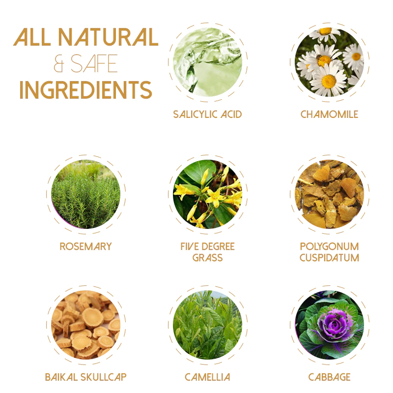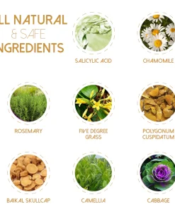 - Ingredients: salicylic acid, chamomile, rosemary, five degree grass, Polyhonum Cuspidatum, Baikal Skullcap, camellia, cabbage.