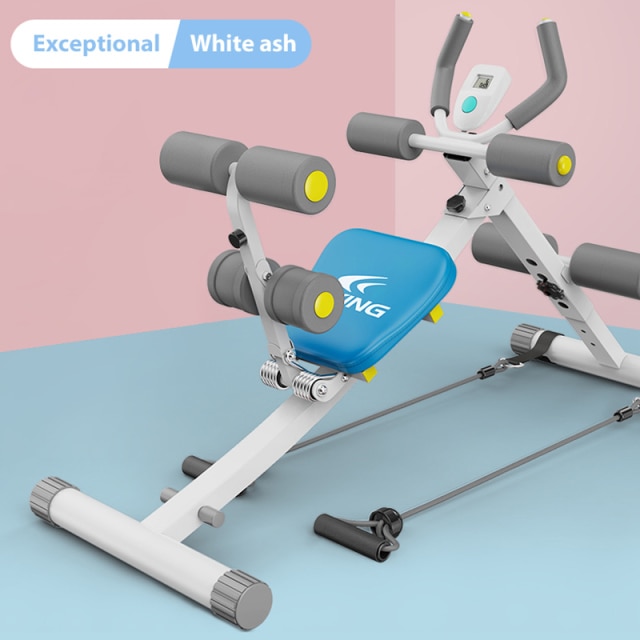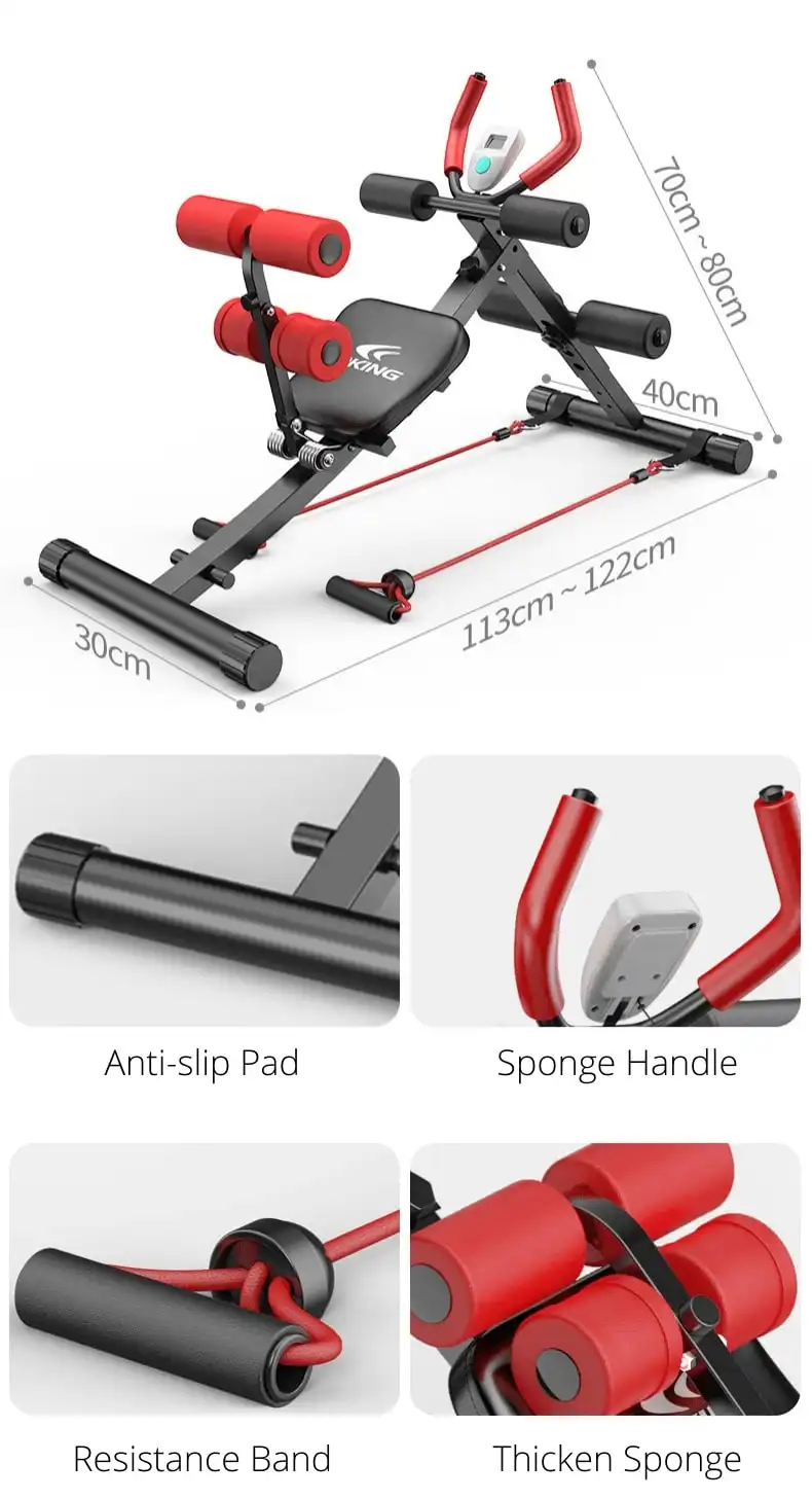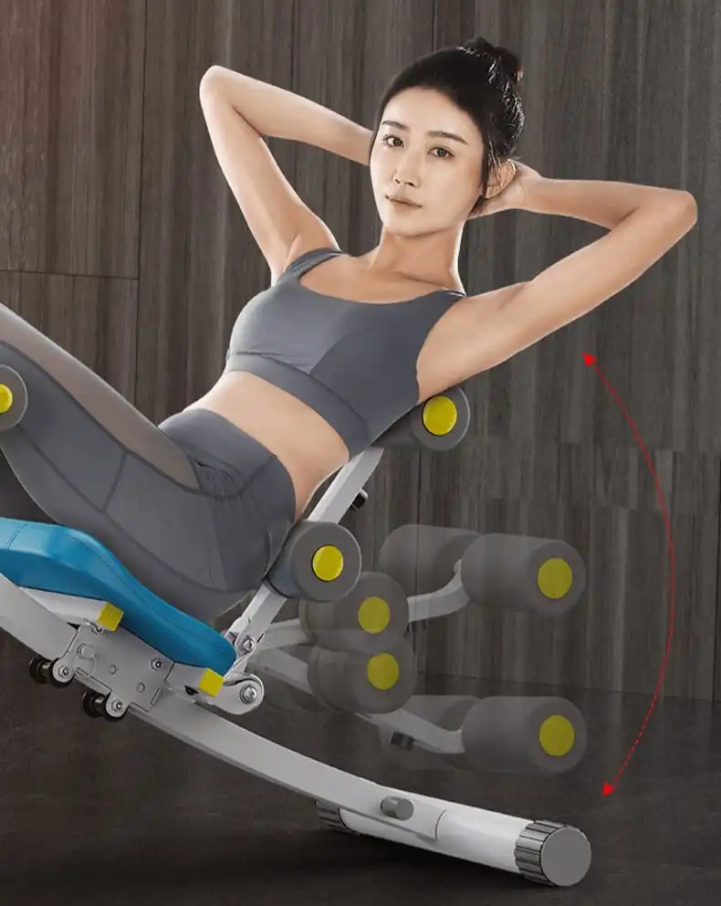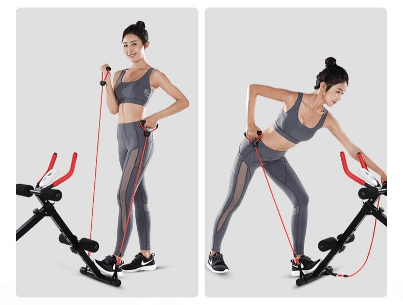The all-in-one ABS trainer includes the resistance band, abdominal wheels, and sit-ups functions.