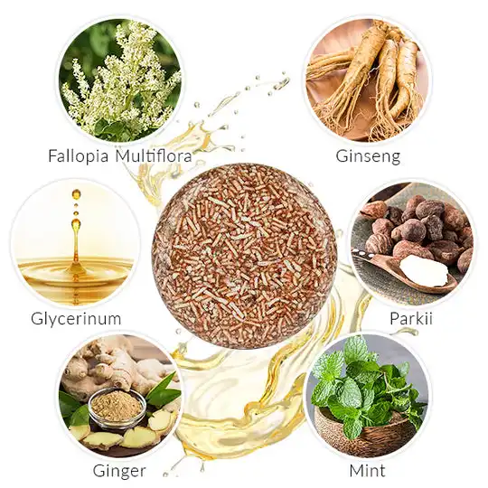 - Ingredients: Fallopia Multiflora, Panax Ginseng, Glycerinum Butyrospermum Parkii, Ginger, Mint