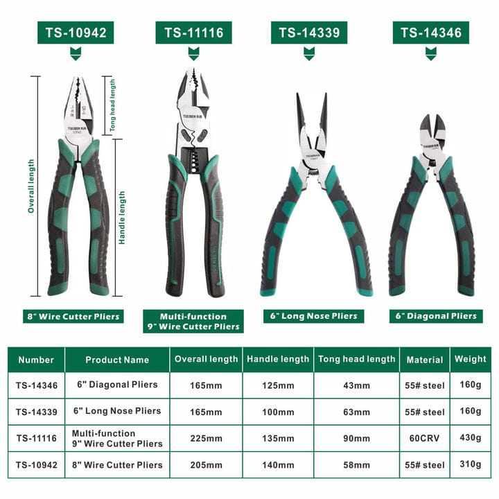 Unlike ordinary pliers, this pliers is made of high-strength alloy 60CRV after repeated high-temperature quenching, and the strength is 60HRC or more. Ordinary steel products can be easily cut. Applicable to various scenarios, it is an indispensable tool in your toolbox. Suitable for general households, garages, shops, repairmen and electricians.