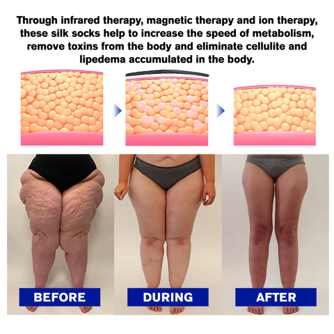 Tourmaline minerals in the bottom and belly of the sock stimulate foot and calf muscles by massaging acupuncture points to promote blood circulation, helping to relieve conditions such as varicose veins, muscle tension, foot fatigue, and muscle stiffness. Our Furzero™ Ion Shaping Ice Silk Knee-High Socks stretch socks help you achieve your weight-loss goals by increasing the speed of metabolism, removing toxins from the body, and eliminating cellulite and lipedema. These silk socks are infused with infrared therapy, magnetic therapy, and ion therapy.