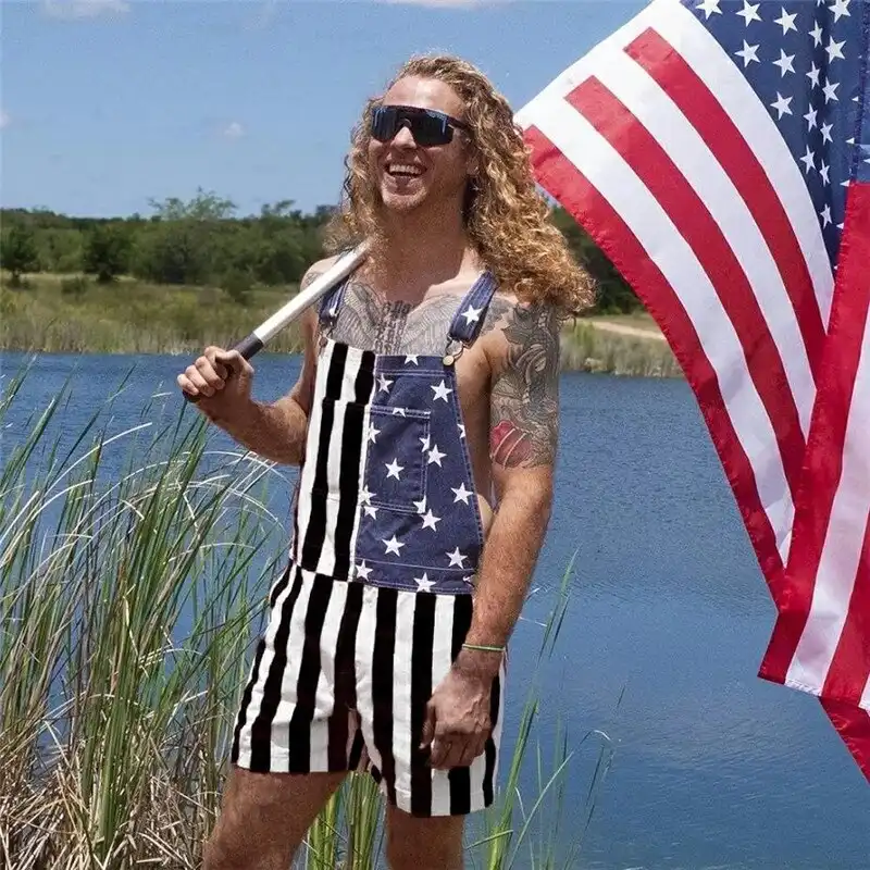 - Package Included: 1 X American Flag Overalls Shorts