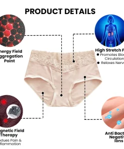 The development team has attached “tourmaline”, a material with energy, to the elastic fiber which creates sensations of heat without other energy sources like electricity. The tourmaline provides users with multiple tourmaline points that could form an energy field, which is able to generate 100,000-300,000 energy units per hour. It helps to effectively stimulate the body’s blood circulation, eliminate inflammatory cells and toxins, reduce fluid buildup and weight loss. Angèle Energy Field Therapy Women Panties!