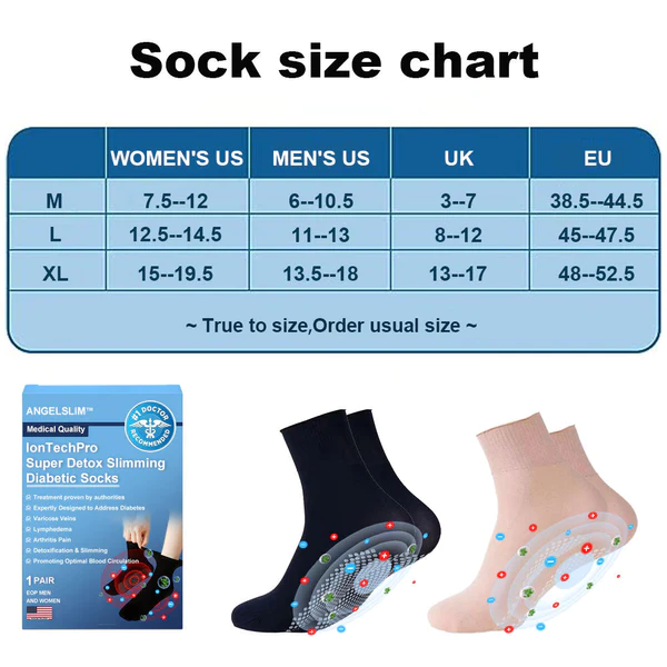 - Packing list: Angelslim™ IonTechPro Super Detox Slimming Diabetic Socks * 1