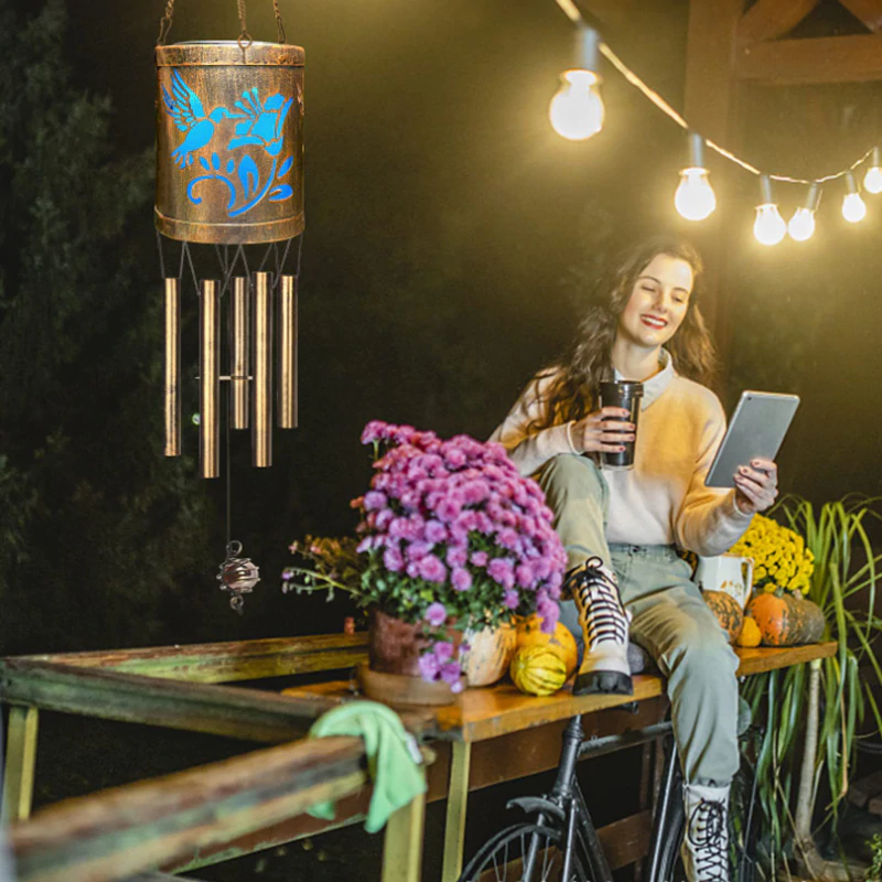 The wind chime lamp is the perfect decoration for your terrace, patio or garden.