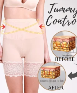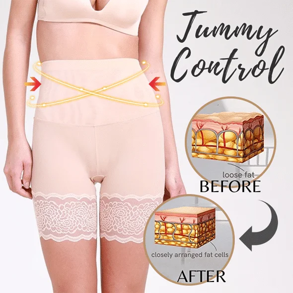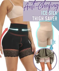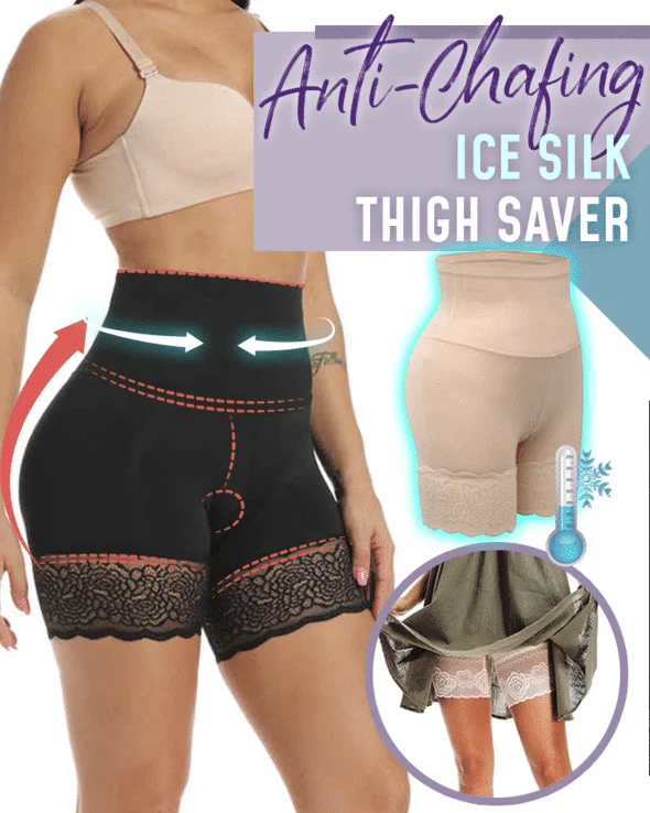 Anti-Chafing Ice Silk Thigh Saver reduces harsh chub rubs during summer with thigh protection lace, while controlling belly fat with double-layered waistband.