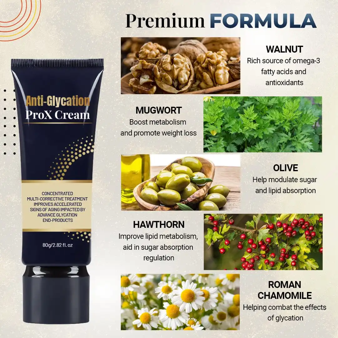 - Take a small amount of Anti-Glycation ProX Cream on your fingertips.