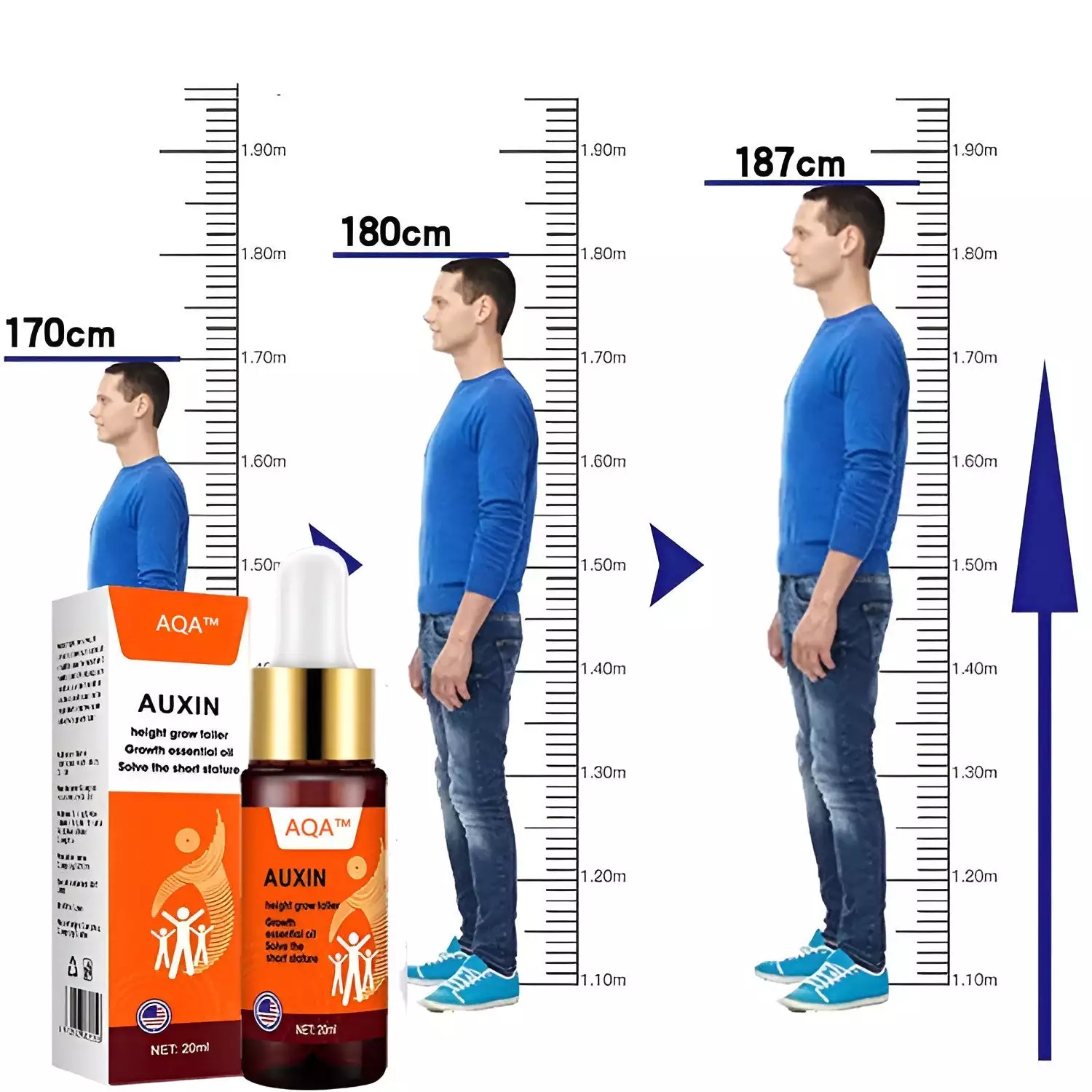 Dr. Arnold Jenkins, M.D., Orthopedist, states: “As a medical professional specializing in growth and development, I am excited to report that AQA™ Height Booster Drops have shown impressive results in clinical trials. Participants experienced a 2-4 inch increase in height over 4 weeks, with no reported side effects. This product offers a safe, non-invasive option for enhancing height growth.”
