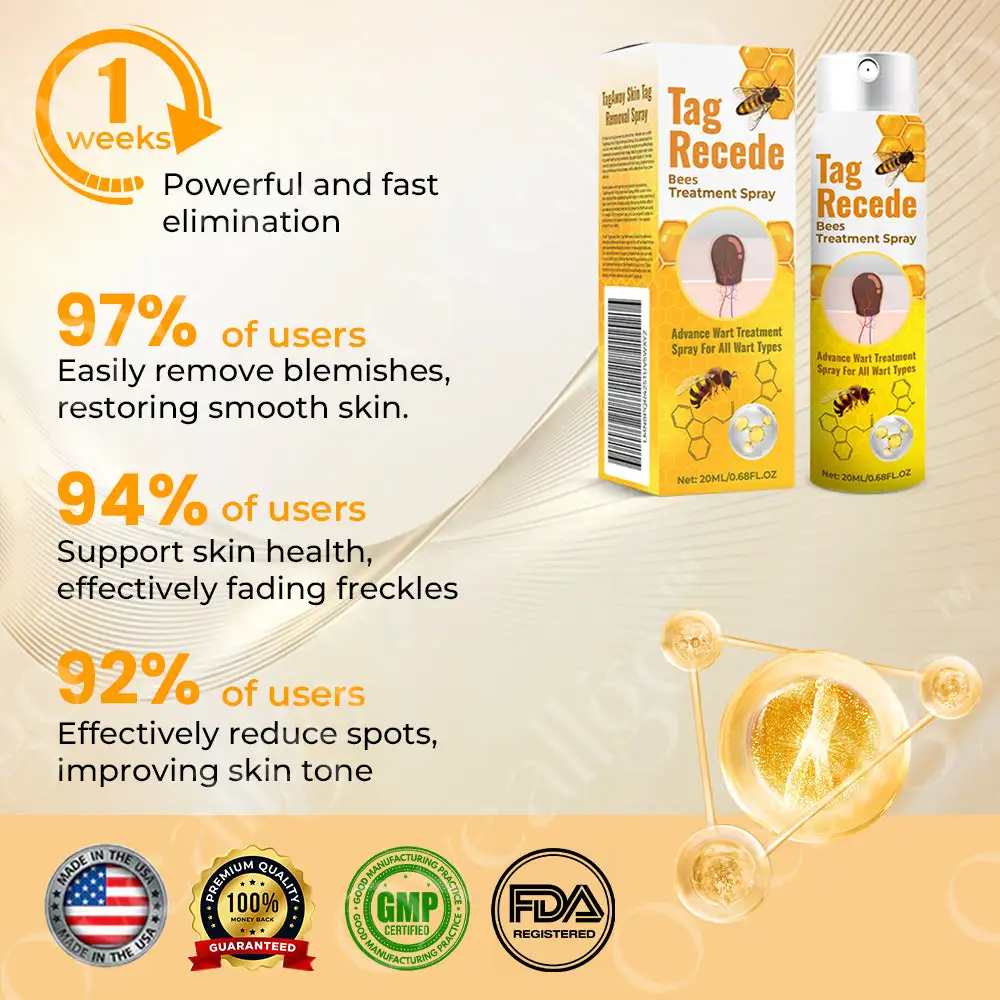 The TagRecede Treatment Spray is the solution harness the potent properties of Bee Poison to effectively target various skin imperfections, including skin tags, moles, warts, and spots. Infused with active compounds extracted from Bee Poison, this advanced formula to break down and gently removing unwanted growths.