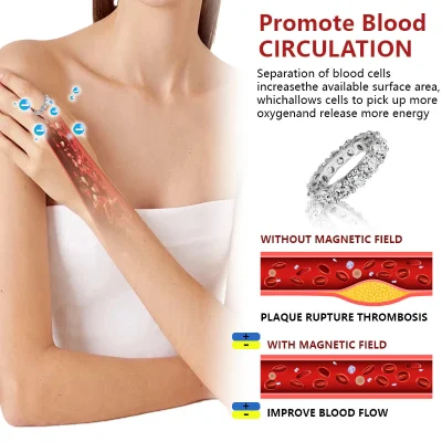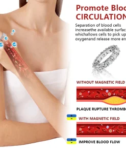 Typical magnetic products either use magnets with minimal magnetic field penetration or cause like poles to repel, creating a dead zone between the magnets. AXIA™ High Magnetic Eternity Ring uses an Alternating North-South Polarity Orientation to maximize the magnetic field flow also release the electromagnetic charge to offer for remove blockages around the body and restore a natural flow of energy.