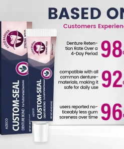 In clinical studies, AZECO® Custom-Seal Denture Bond demonstrated a remarkable 98% denture retention rate over a 4-day period. The formula is completely zinc-free, non-toxic, and compatible with all common denture materials, making it safe for daily use, even for those with sensitive gums. Dentists across the country now recommend it to patients seeking a more reliable and comfortable alternative to conventional adhesives. Users also reported noticeably less gum soreness over time, thanks to the product’s gentle, cushioning properties.