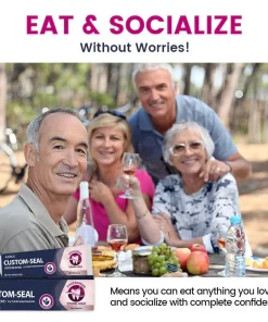 Unlike messy pastes or unreliable powders, AZECO® Custom-Seal Denture Bond is waterproof, food-resistant, and lasts up to 4 days without needing reapplication. Whether you’re eating, speaking, or laughing, your dentures stay firmly in place, giving you worry-free confidence throughout the day.